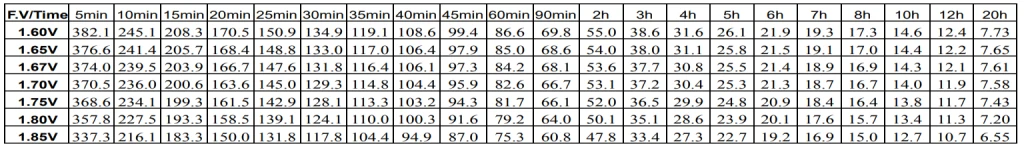 Разряд постоянным током на ячейку (Amperes at 25°C)